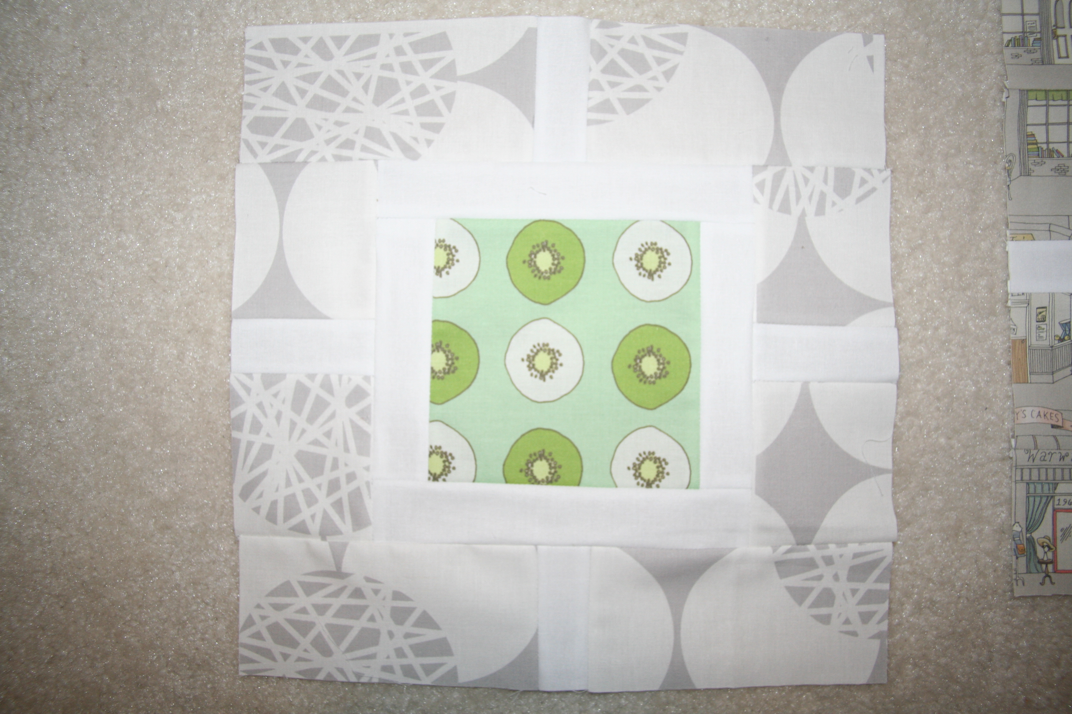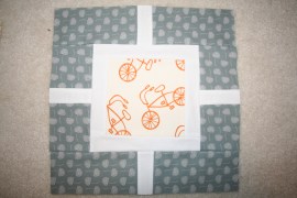 In the previous post, I was able to share the first 5 squares of 64 for this quilt, which was only doable as I discovered Spoonflower (found fabric prints that fitted with what we were looking for). Here’s a reminder: