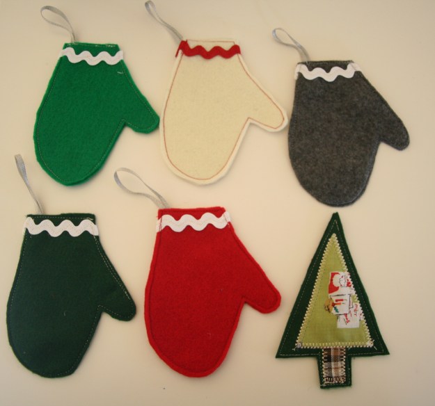 Other Christmas preparations; I am making these cute felt ornaments. The mittens, I am selling in the upcoming Craft fair at work, and I am still thinking about the Christmas tree one (this first one was a sample).