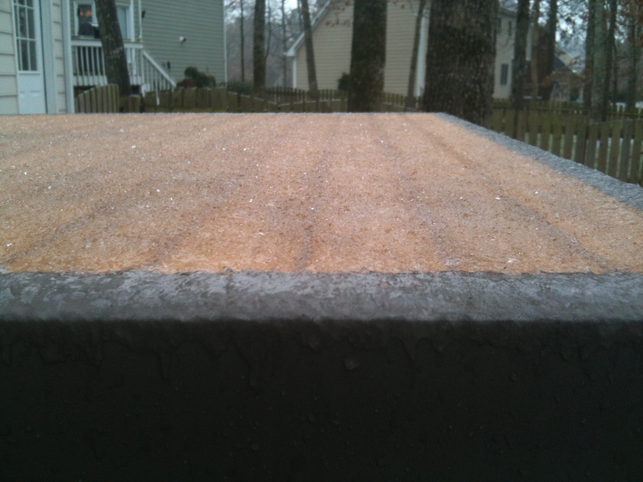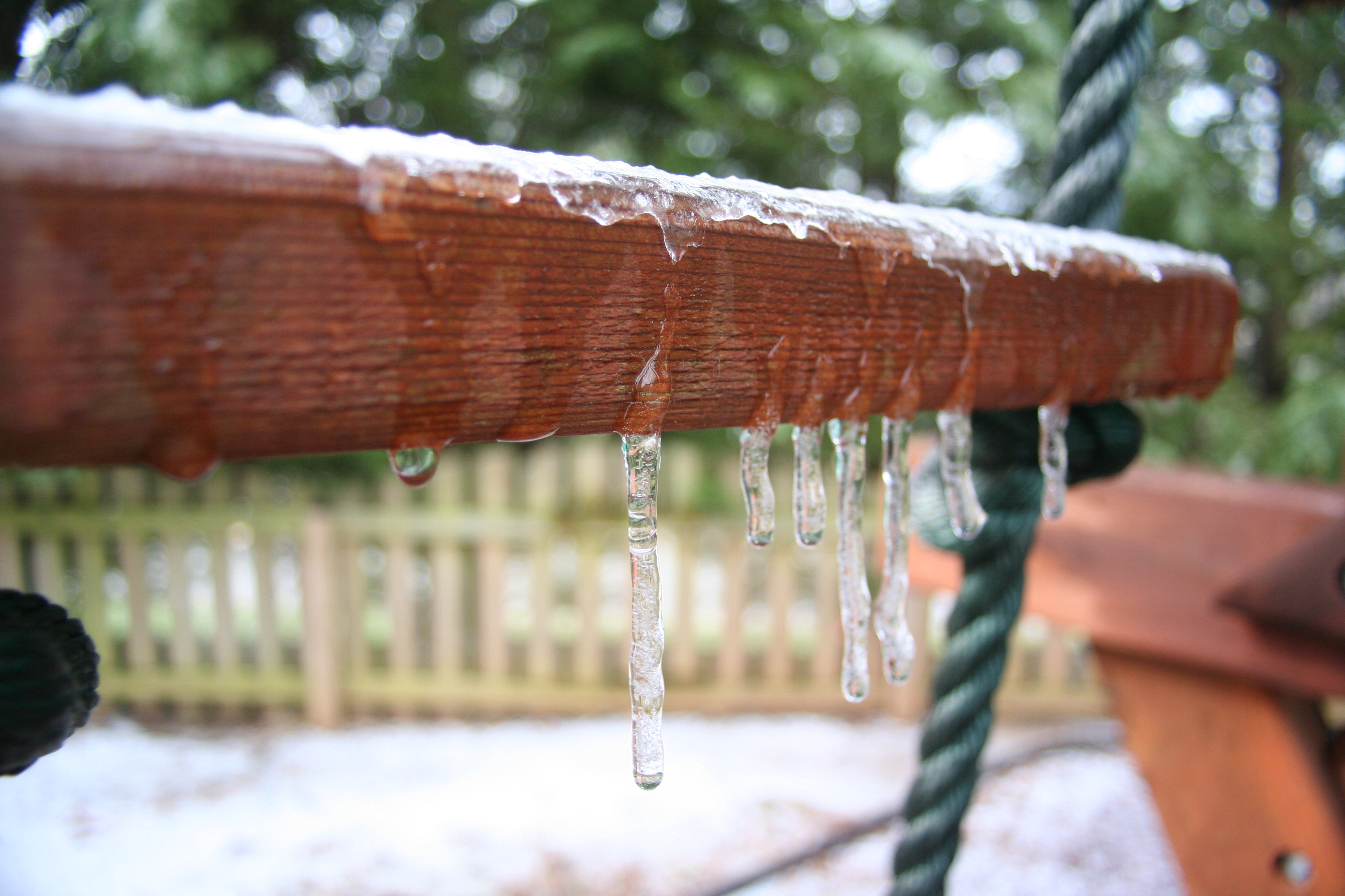 Our Deck covered with ice, it’s like walking across a grater – the ice is that hard and has the lumps from the ice pellets that fell.