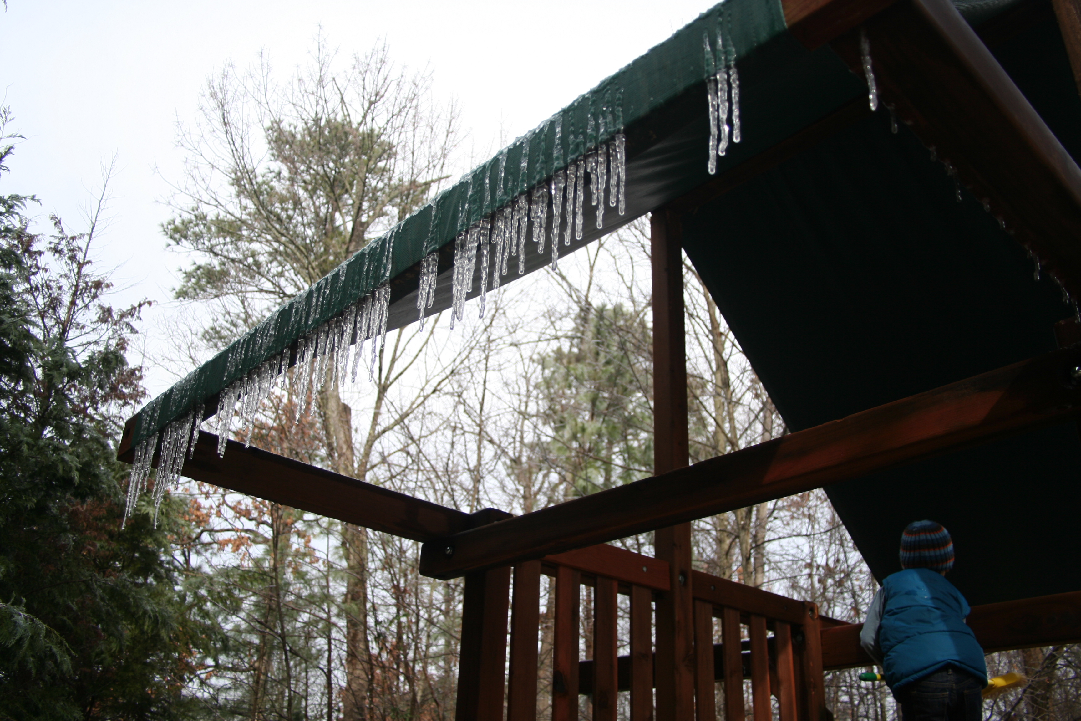 Sean’s Playground had a nice coating of ice. His job today was to de-ice his playground which he thoroughly enjoyed.