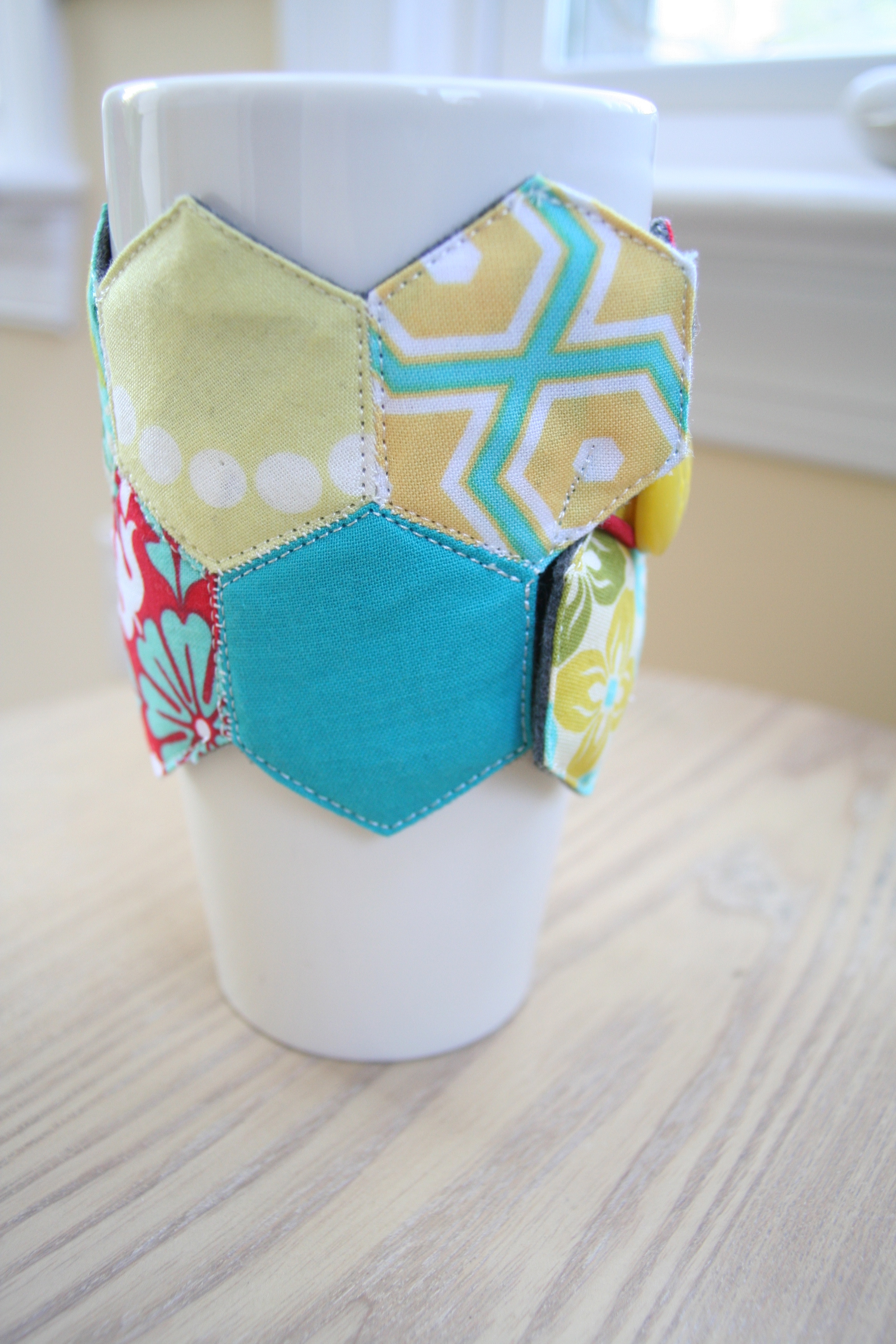 I had some more fun this week making coffee cup sleeves from hexagons. I managed to finish the first one, which I am loving. Now, I have to decide if I will post it on my Etsy store or keep it.