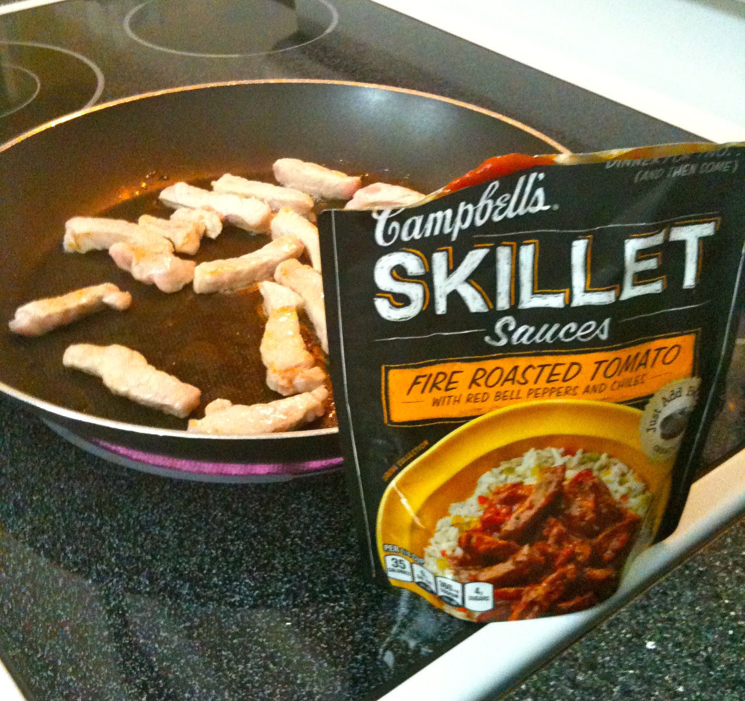 Lastly, tonight, we tried a new vegetarian sauce with all real ingredient’s (which you add meat to it) from Campbell’s. It is call “Skillet Sauces” and you just brown your selection of meat and add the sauce. I was very surprised with the result, after 10-15 minutes cooking…dinner was served; it was full of flavor with a kick and tasted great !!!