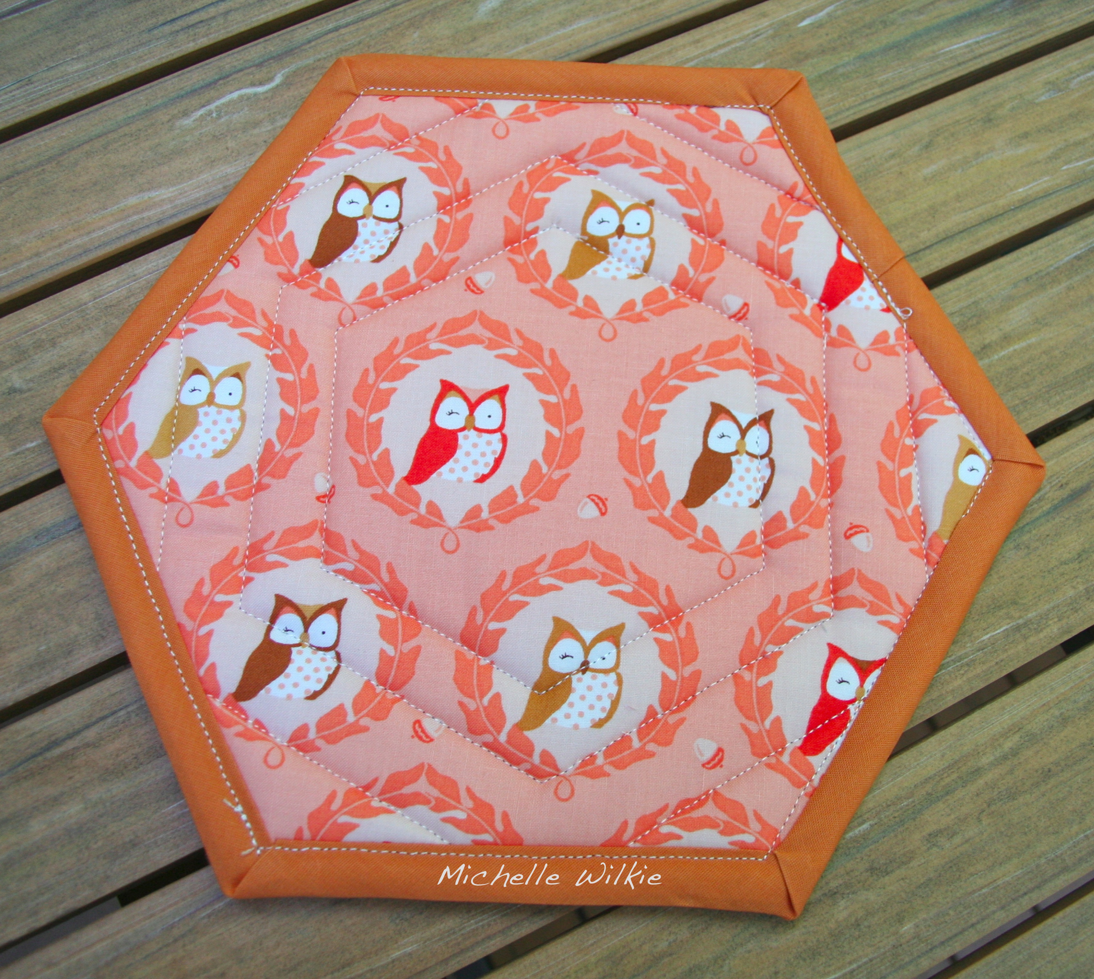 I was just reminded on the radio that it is the longest day of the year today. The scary thing is that means we are almost 1/2 way through the year….where did that time disappear? I have so much on my to do list still for the year, however, one of those items was the Patchwork Please Hexagon Trivet. Today, I have finished one!!
