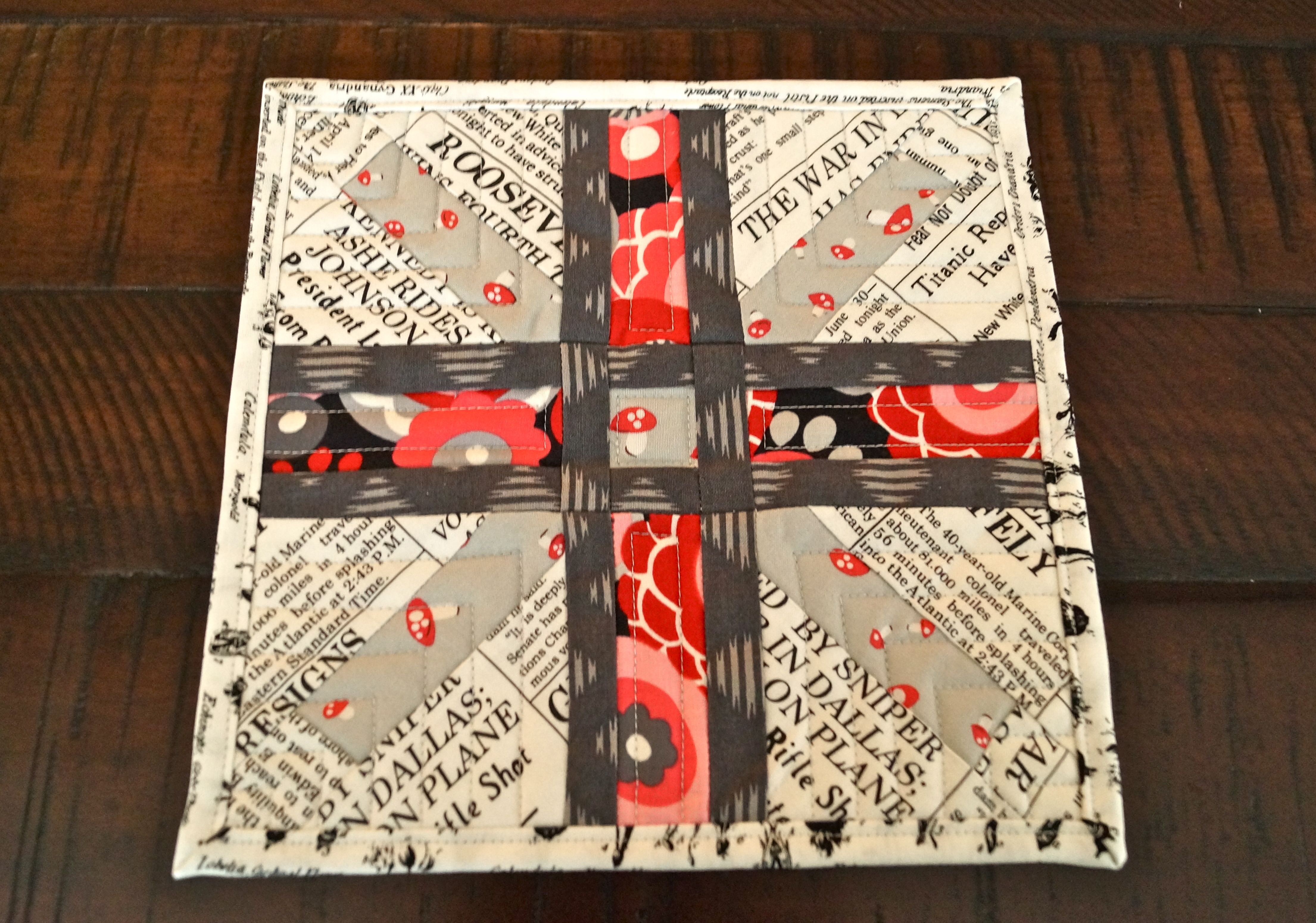 Lisa @ Hilltop House Creative Works, made this very cute mini quilt from the block. I could definitely use this as a mug rug or a pot holder/trivet….don’t you think??