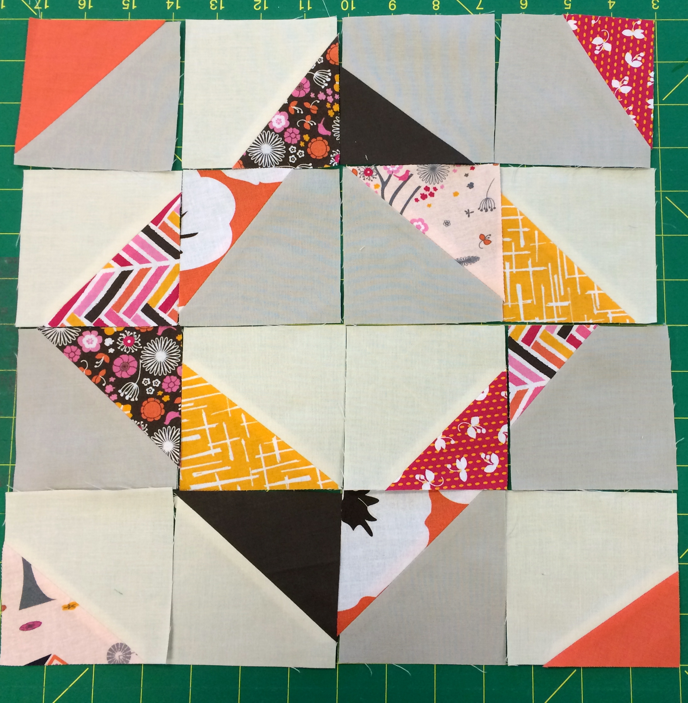 Instead of doing individual blocks, like I did in her last class, I decided to co-ordinate all the blocks in hopes to do more with it. You can check out her blocks that she taught from, here. Here is a sneak peek of what may be a block…I struggled with this block. I did not want it to be so regular.