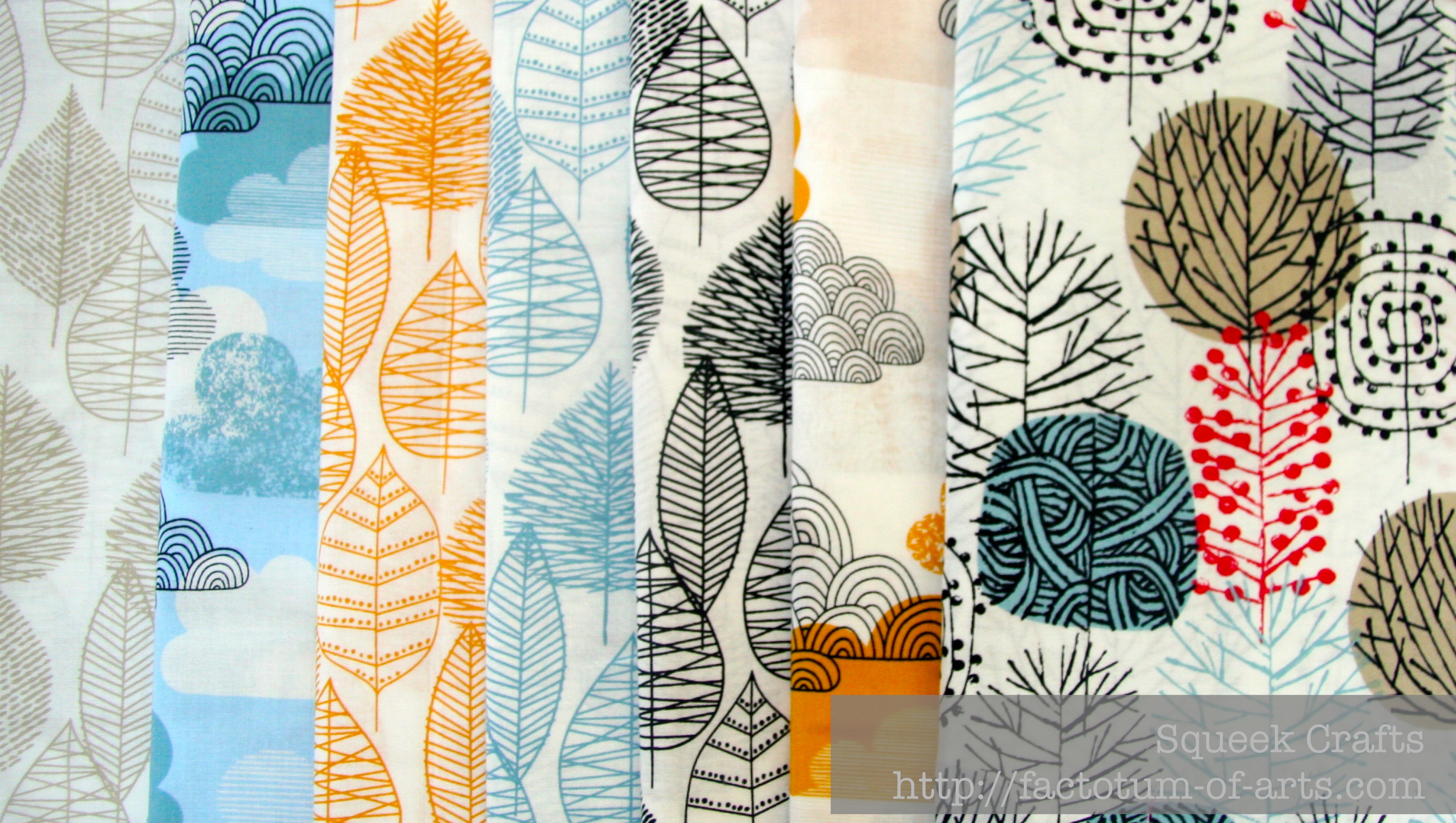 The first ones are all from “Bark and Branch” by Eloise Renouf for Cloud 9 Fabrics. I purchased these from Hawthorne threads.