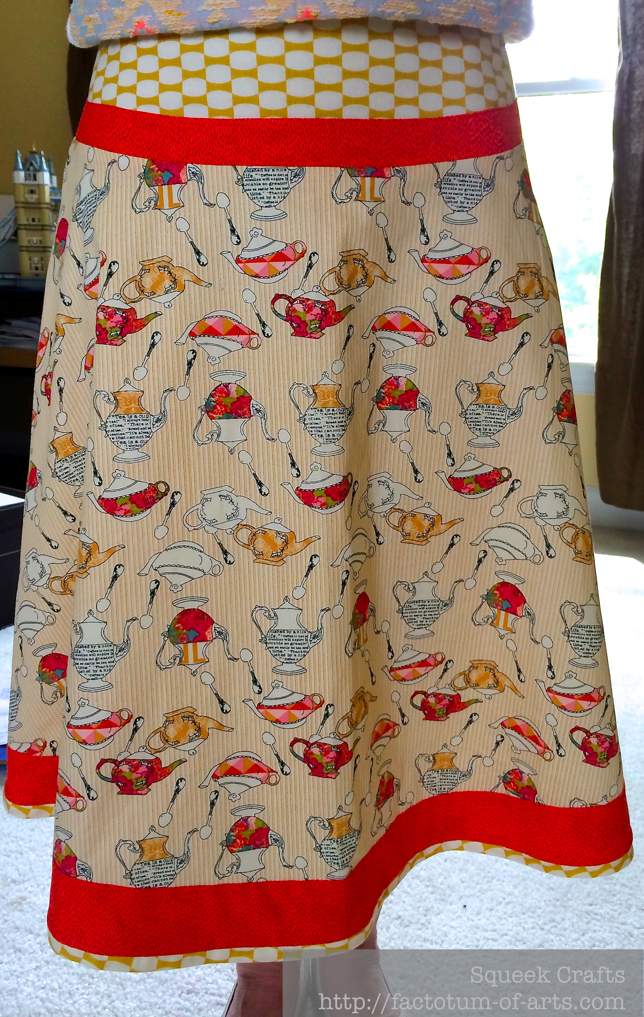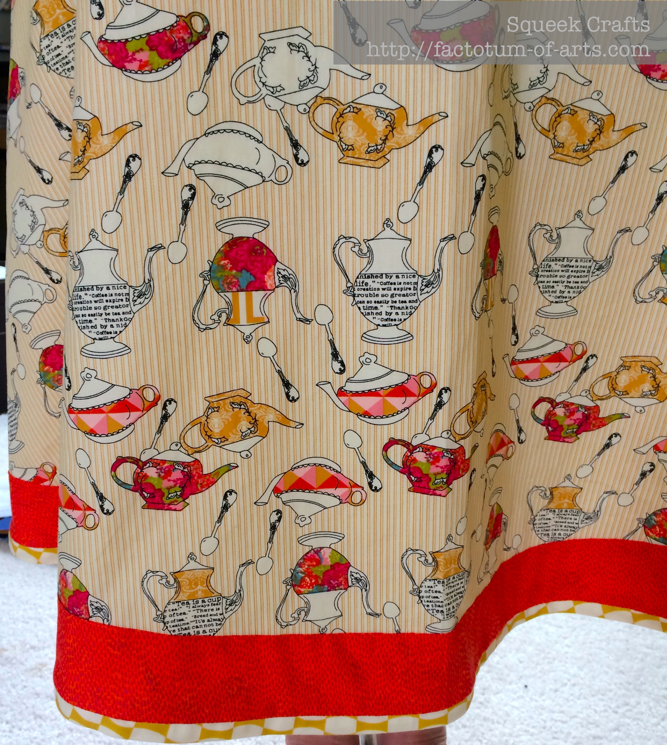 My Mum is a fabulous seamstress, who has made our kids clothes, my ball gowns and 1930’s outfits for the Hawkes Bay Art Deco weekends in New Zealand. This is the first time, my mum and I have talked about fabric and sewing. She had mentioned that a woman in her book club had this great teapot skirt. We raided my fabrics and next thing you know she has a finish….FullSkirt