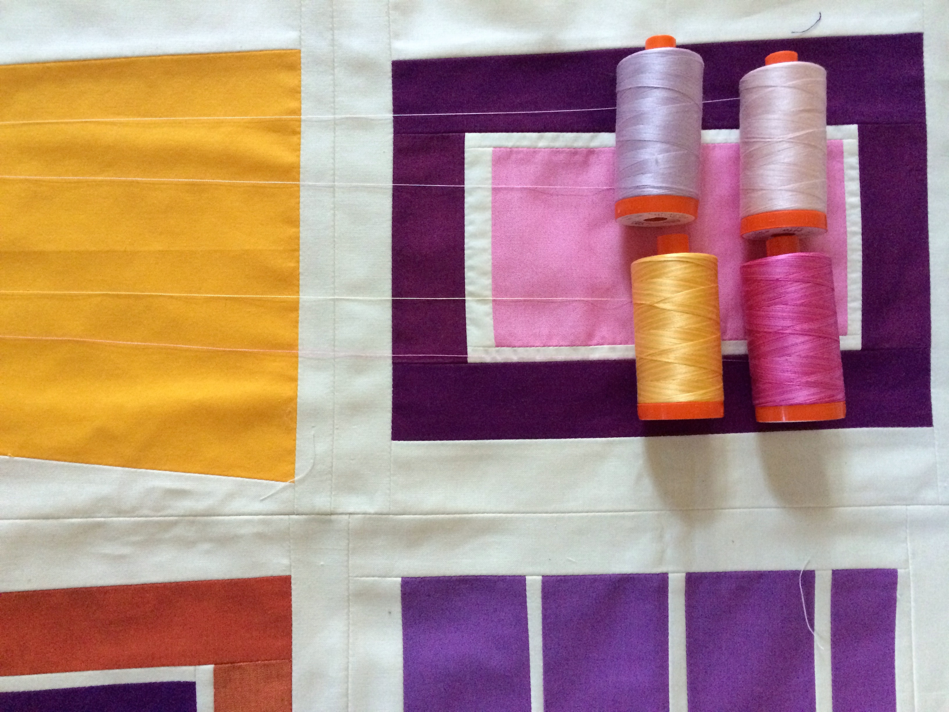 I like the yellow and bright pink threads best; the other two are such pale shades that they won’t register so well, and will look white against the stronger colours. Like what you’re doing with the quilting a lot! I’ve been on a hand quilting kick for a while now – it may be time to revisit machine quilting – once I unpack, of course!