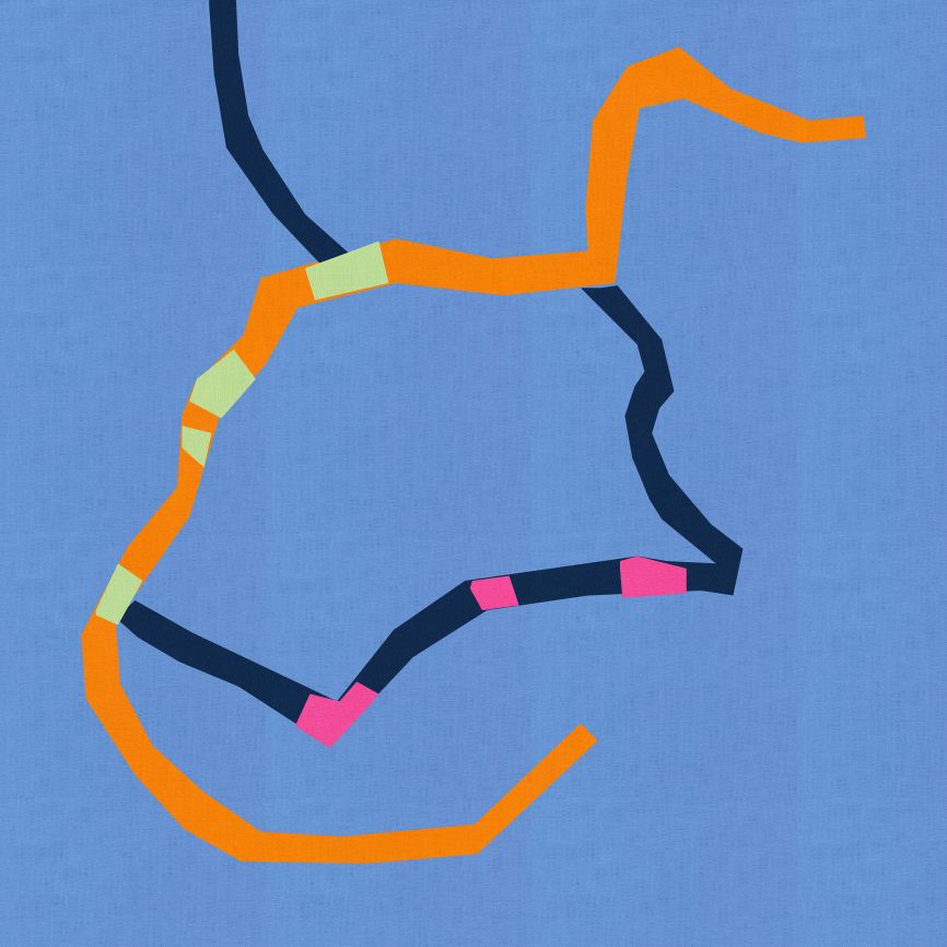Well this is the design I got from my map, using vector based design tool. I think I would like to bring the map into illustrator and play even more and more accurately translate the map. I do think this would make a very fun bias applique project.