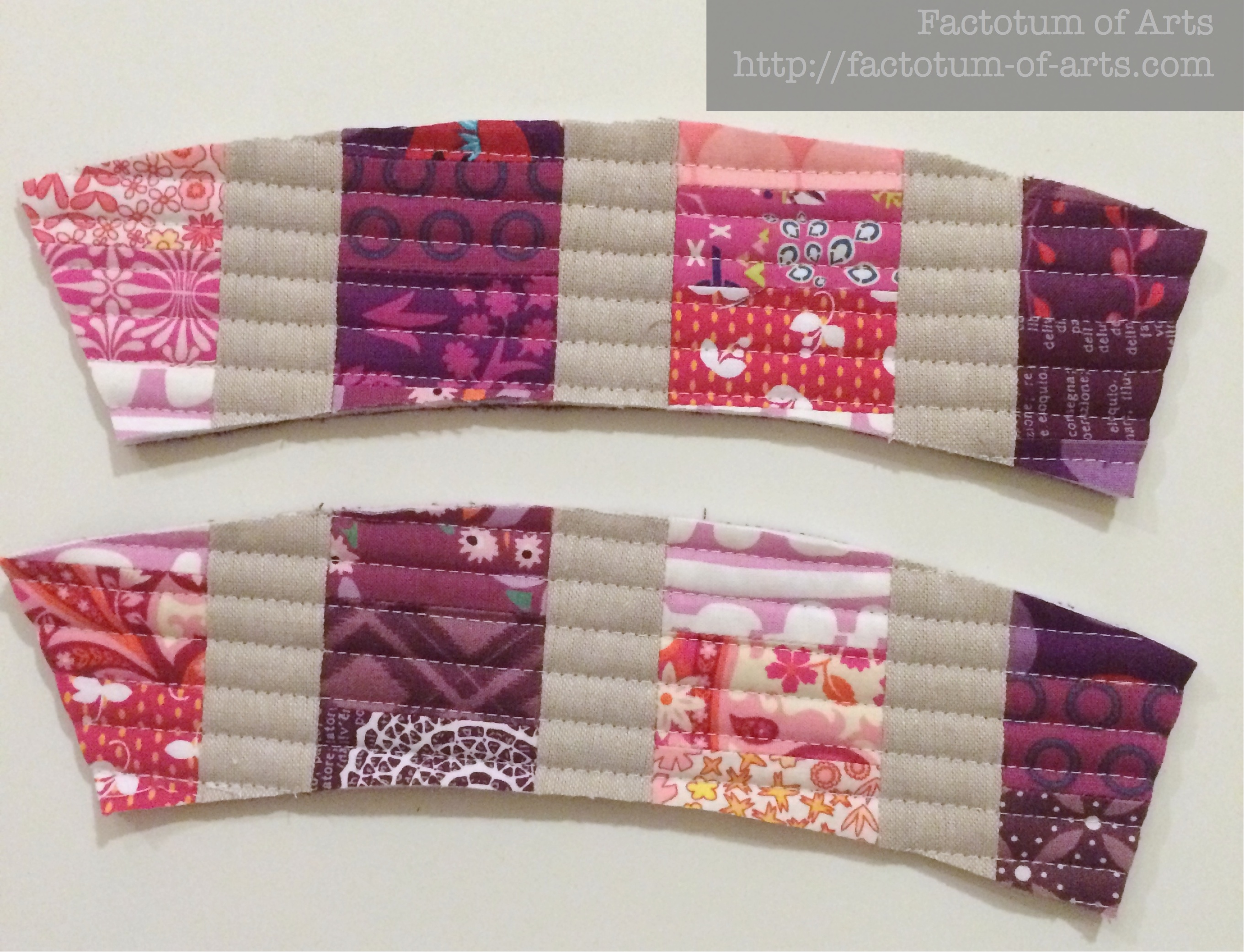 - Pin the template on the quilted sandwich. Cut out your coffee cup sleeve.