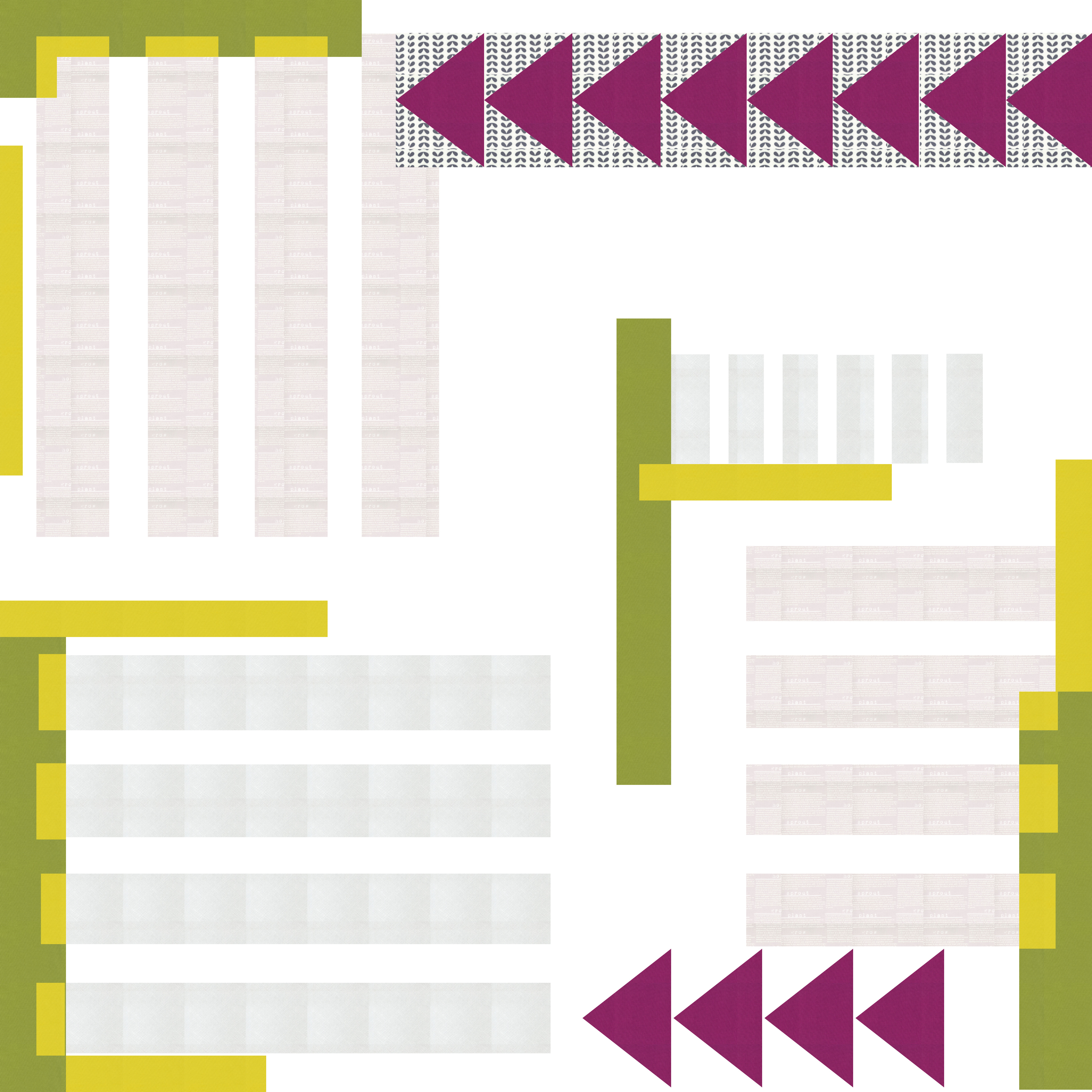 This is actually the second of my designs. I was playing with some transparency with a mix of solids and low volume prints. This is in fact the layout of the first floor of our house. The flying geese represent stairs while the bars represent floor space. The green solids represent walls. I am definitely plan on making this one up – I love this one.