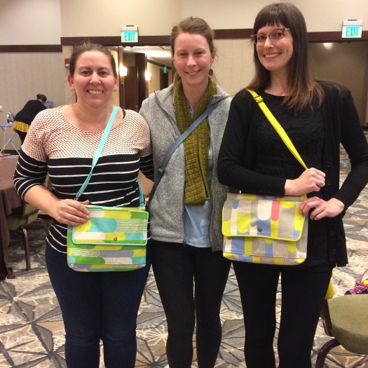 We made her Traverse Bag, a recently released pattern. Spending time with her, talking about her work, her patterns etc. was such a memorable event. Corrinna, my Sewtopia roomie, by fluke, chose the exact same fabric for the back, but in different color ways. It’s a Japanese print we both found at Bunny Designs at our last Sewtopia in Austin.
