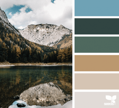 Design: I loved the angles that the mountains provided and the reverse present in the reflection of the lake. I used those angles in the design.