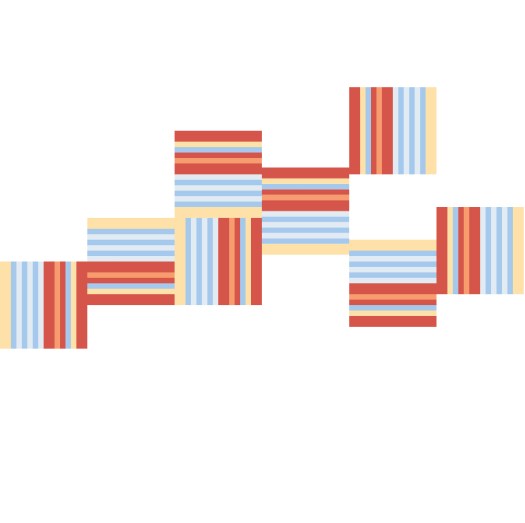 Design: Designing the obvious stripes in this one, but using a smaller squared block at various positions and direction to add interest and movement. Reminds me a little of floor tiles. It was also a strange color palette for me. Not a fan of the design, but I can’t think what I would do differently….maybe convert to the triangles based on the edge of the umbrella??