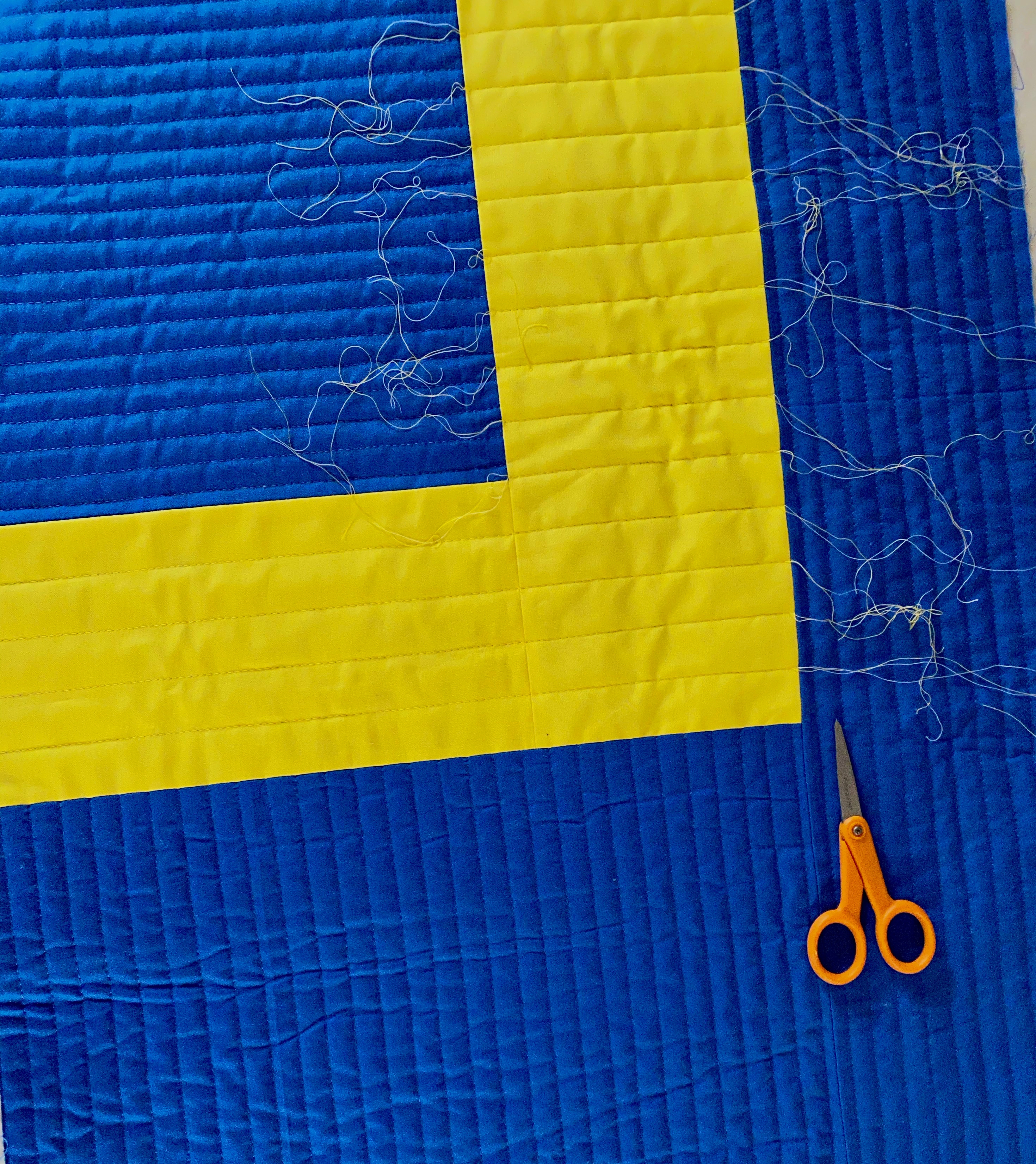 Quilted: Straight lines walking foot quilting, Aurifil #6738 and #2120