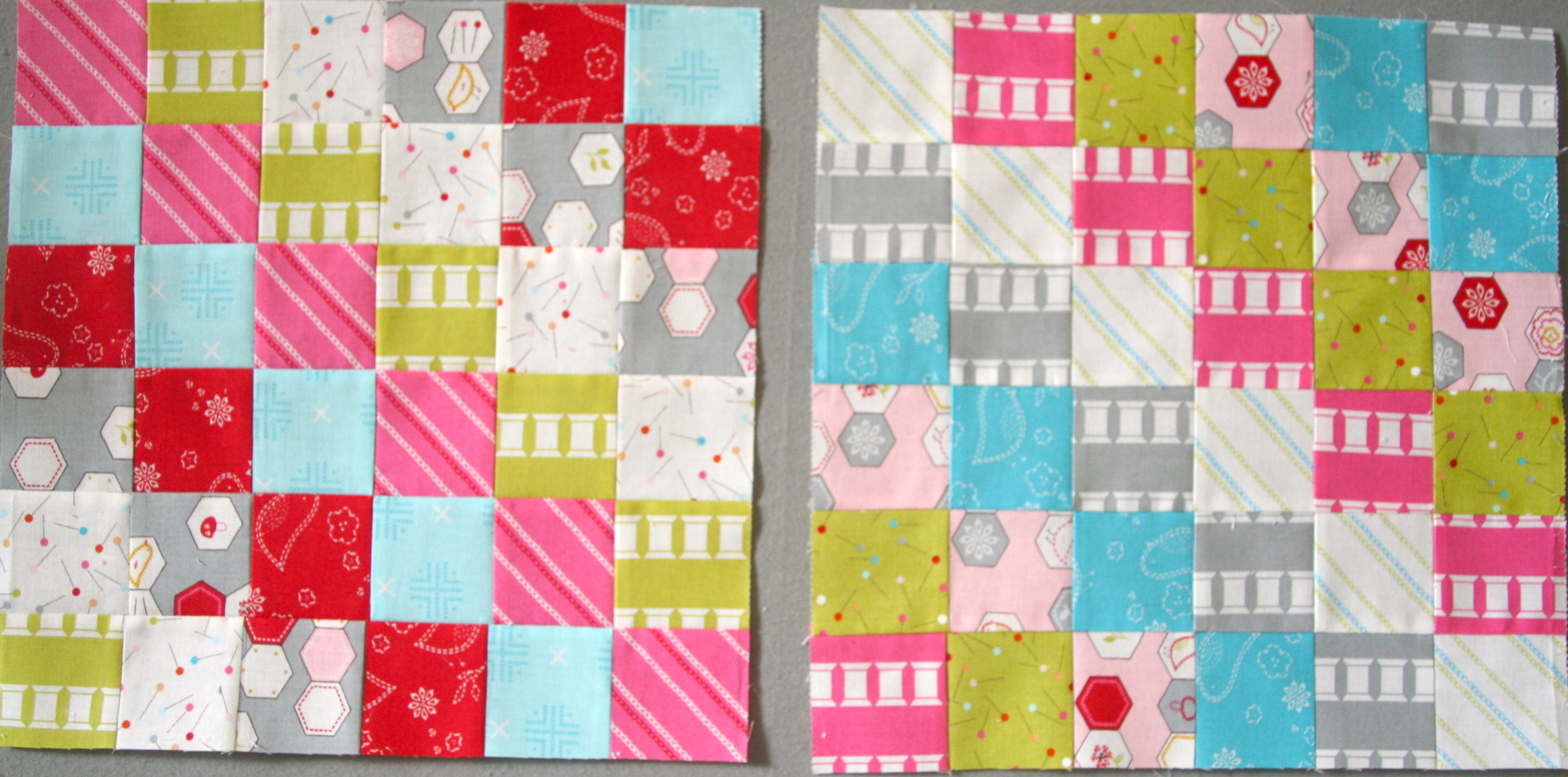 1. Grove Low Volume Block, 2. ScrapBeeLicious October Block Full, 3. Cold Colored Block, 4. Warm Colored Block