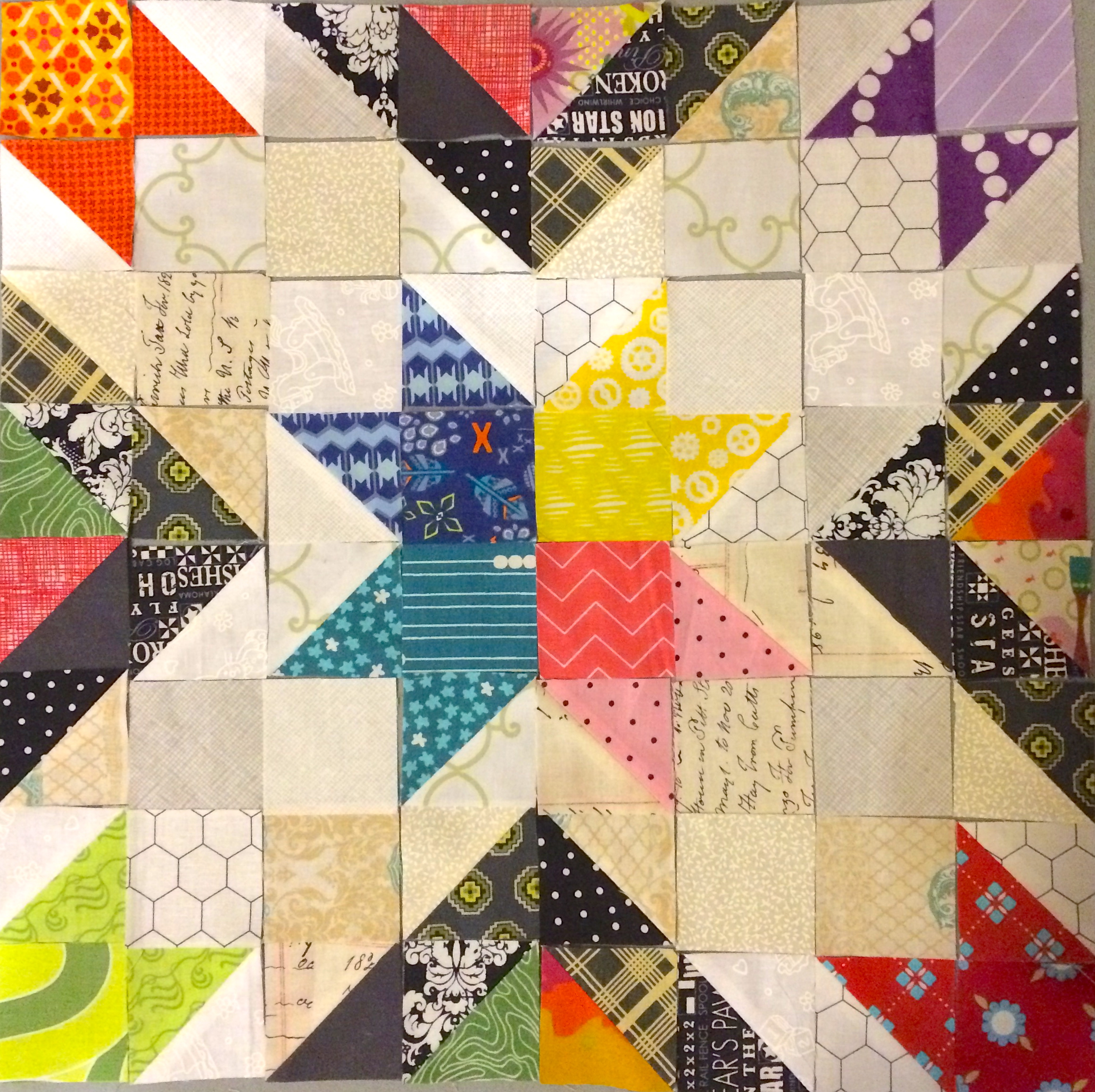 I have managed to make some progress on the scrap-bee-licious blocks, finishing up this star block.