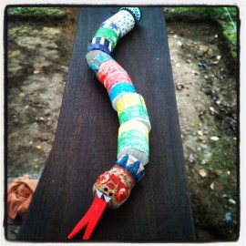 It starts with an idea. I bring that alive using hardwood, draw a shape free hand, then cut around it and sand down the rough edges. I paint the hardwood white with a few coats of paint. I choose fabrics and other materials, spent time cutting, placing and gluing them on the cut shape.