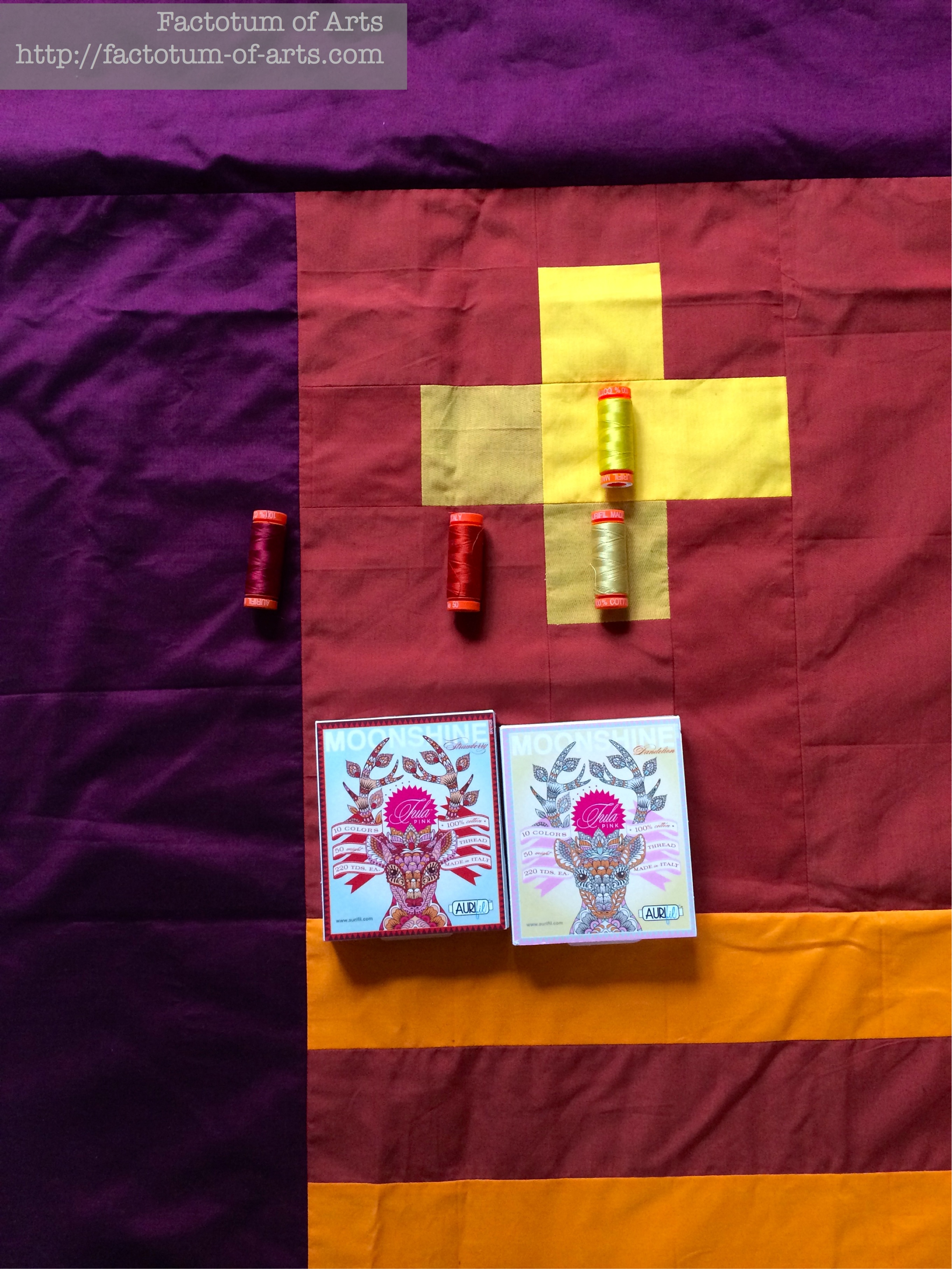 Before Christmas, I was looking for thread that I could use to quilt my Rangers Station quilt. I am happy to report, I found it in Tula Pink’s Moonshine Aurifil boxes. Look, perfect matches. This quilt will also be my Marsala submission for the upcoming Pantone submission….I know, I am ahead of schedule on this one!!