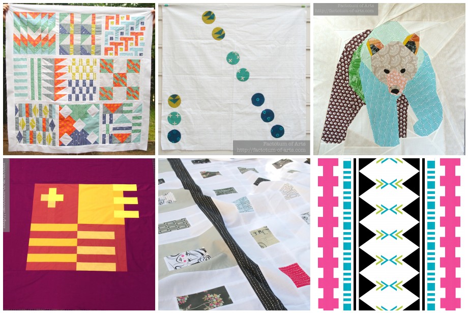 - Project of the Month and my goal for ALYoF is the same as last month – my Spoonflower Sampler Quilt. I actually plan, starting next week to release a block or two patterns per week (total of 12 blocks), as I complete the quilting and binding on this project. So stay tuned every Saturday for the releases!!