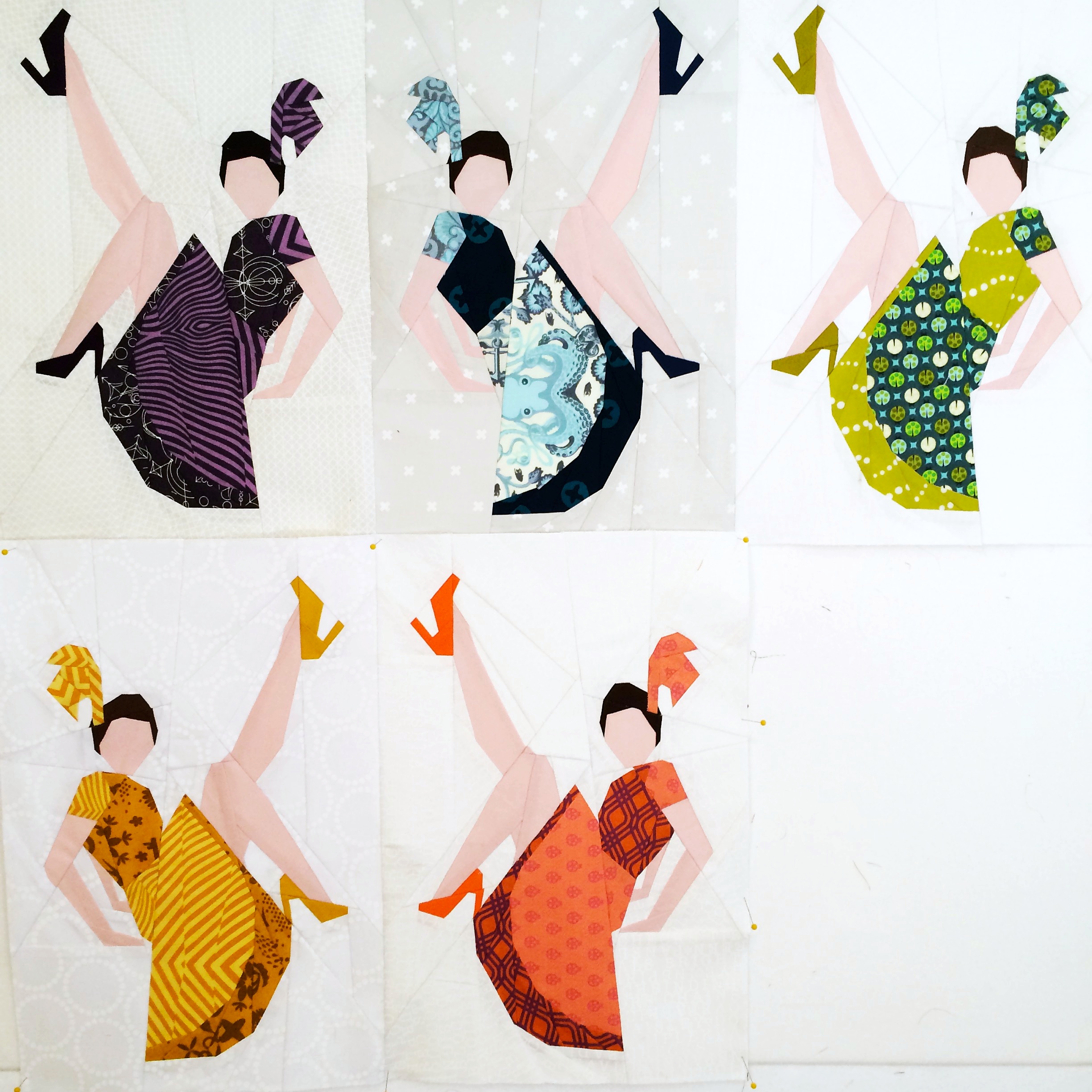 - First priority: Sisterhood of the traveling quilts – Laura’s (@littleandlots) quilt addition…She wanted a row of blocks, that represent the rainbow. I was pulling fabric trying to decide and all of a sudden I found that I loved Tula Pink + Alison Glass combination. It just happened I was pattern testing at the same time for Juliet @ Tartankiwi, and feel in love with the Can-can girl paper piecing template. I am almost finish – here is Miss Orange through Miss Violet…
