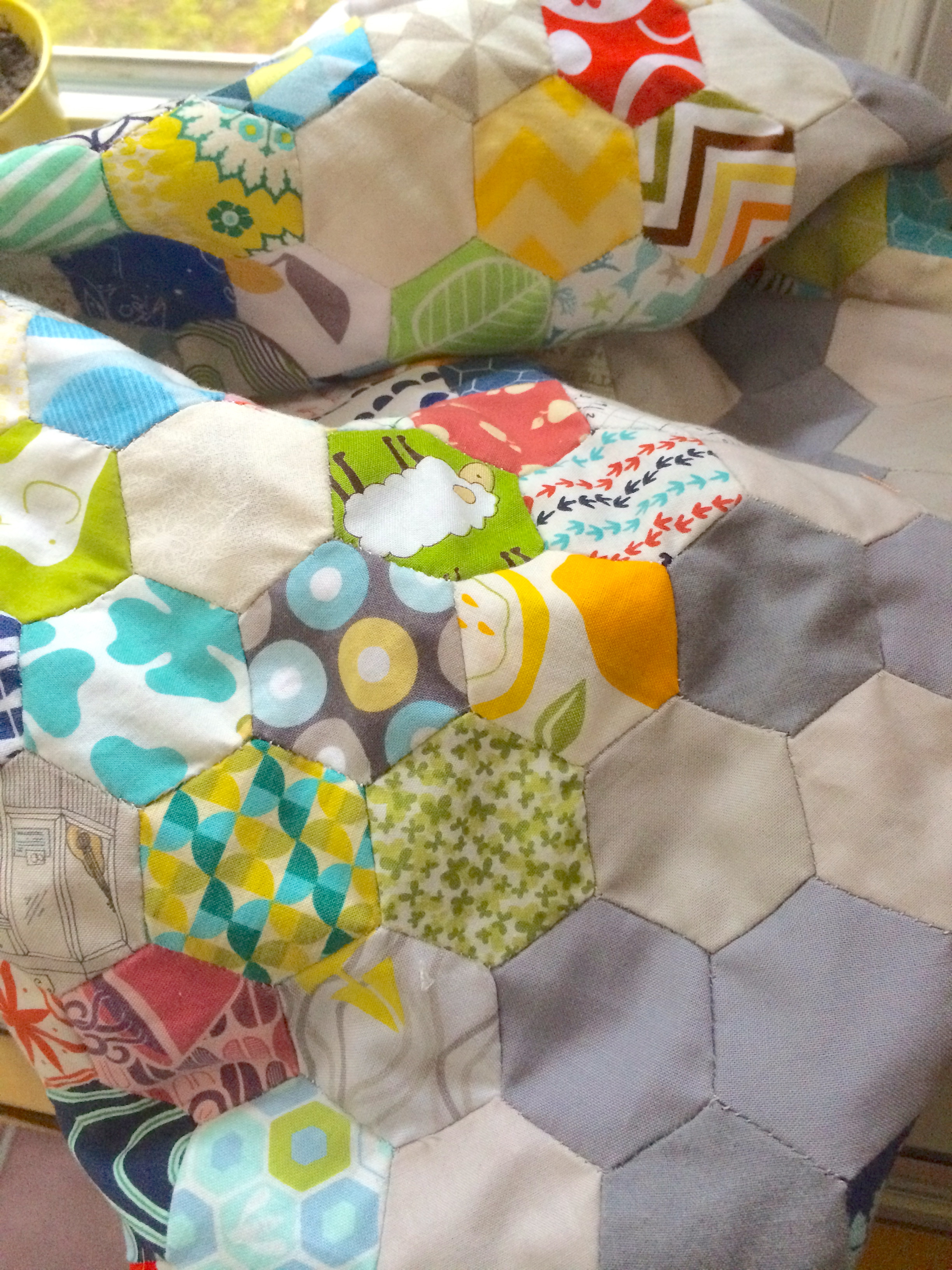 Project 4: Of course, you need to keep a 4 1/2 hour drive interesting…so you guessed, it the hexagon quilt is coming with us.
