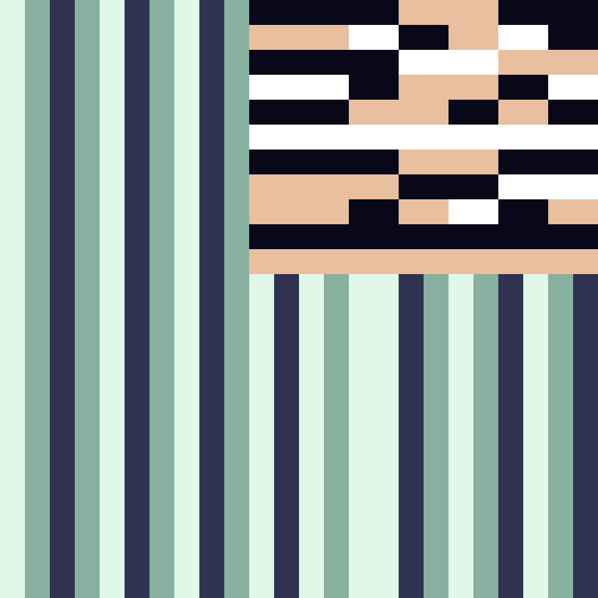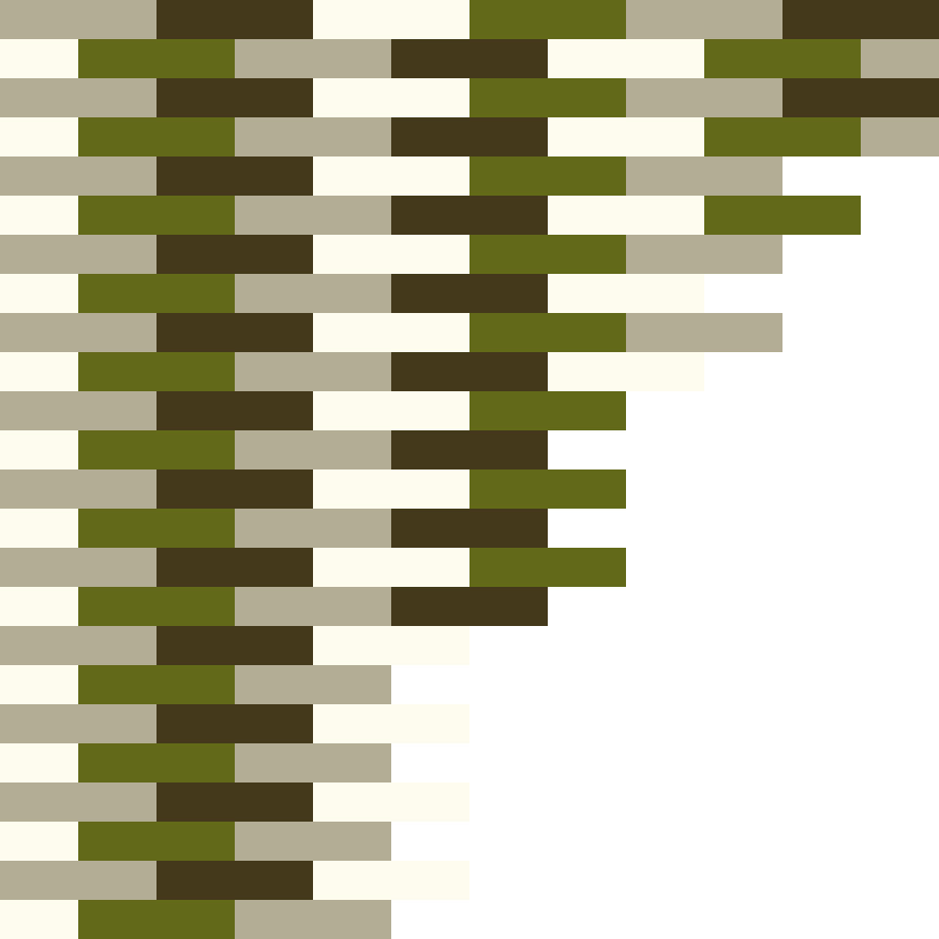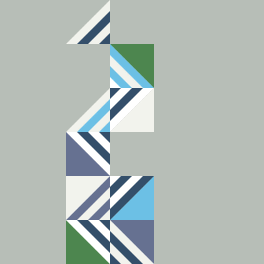 I was inspired by a blind and its reflection on the wall for this design. I do like the angles and the variations of the line widths in the design, though I would use a different color palette if I made this up.
