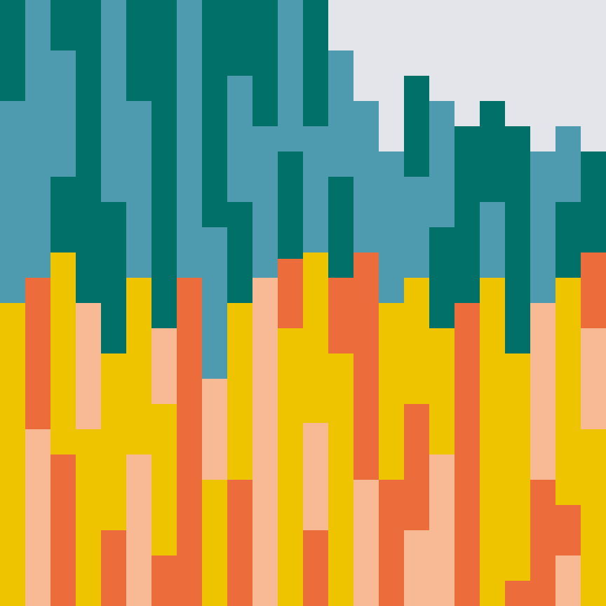 The coastal village on the hillside spark had areas of color. I used these blobs of color in my design. I was also inspired by Clare Rojas work for this design.