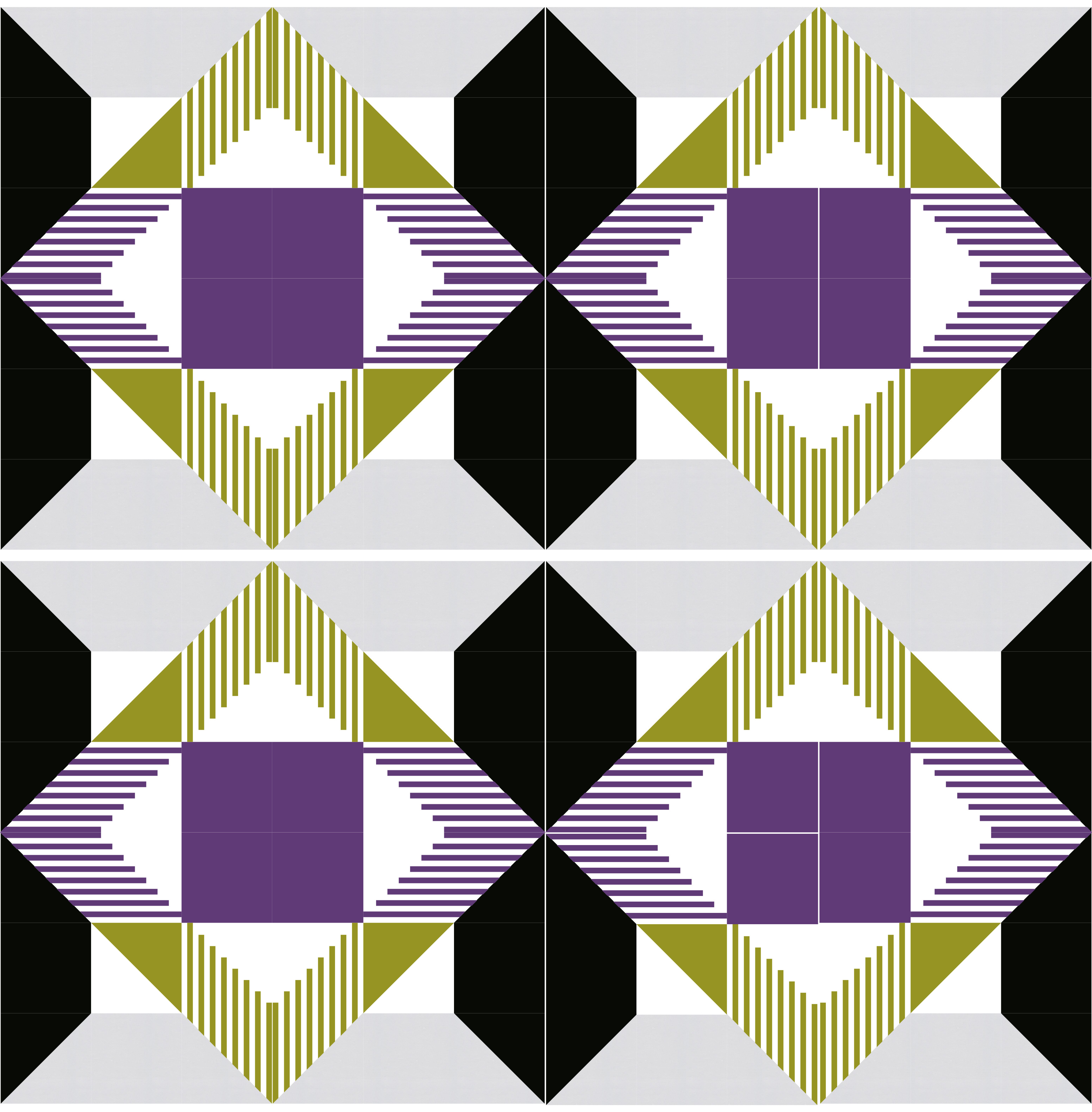 These colors reminded me of Lucienne Day and inspired me to play elements that were in one of her designs where she breaks areas into angles and using solid shapes and lines. Here is my individual block but the repeats are endless and make unique patterns.