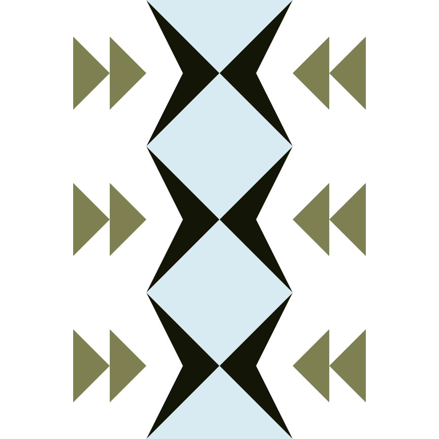 This design was created based on the inspiration of the color palette photo, which was of the Great Wall of China. It represents the offense and defense of battle (with arrows as the symbol) meeting at the Great Wall. This was revision 2 and my favorite color way.