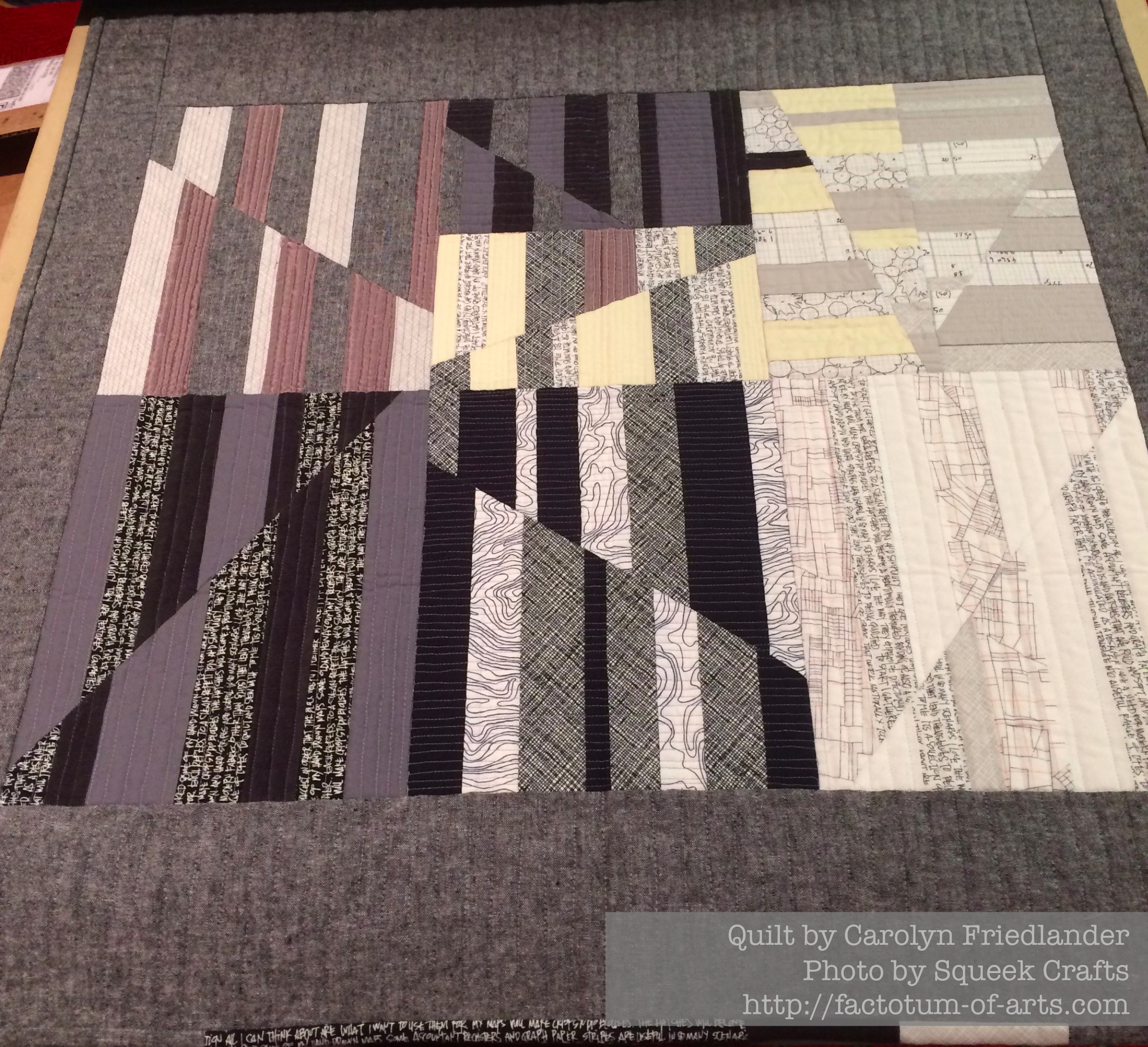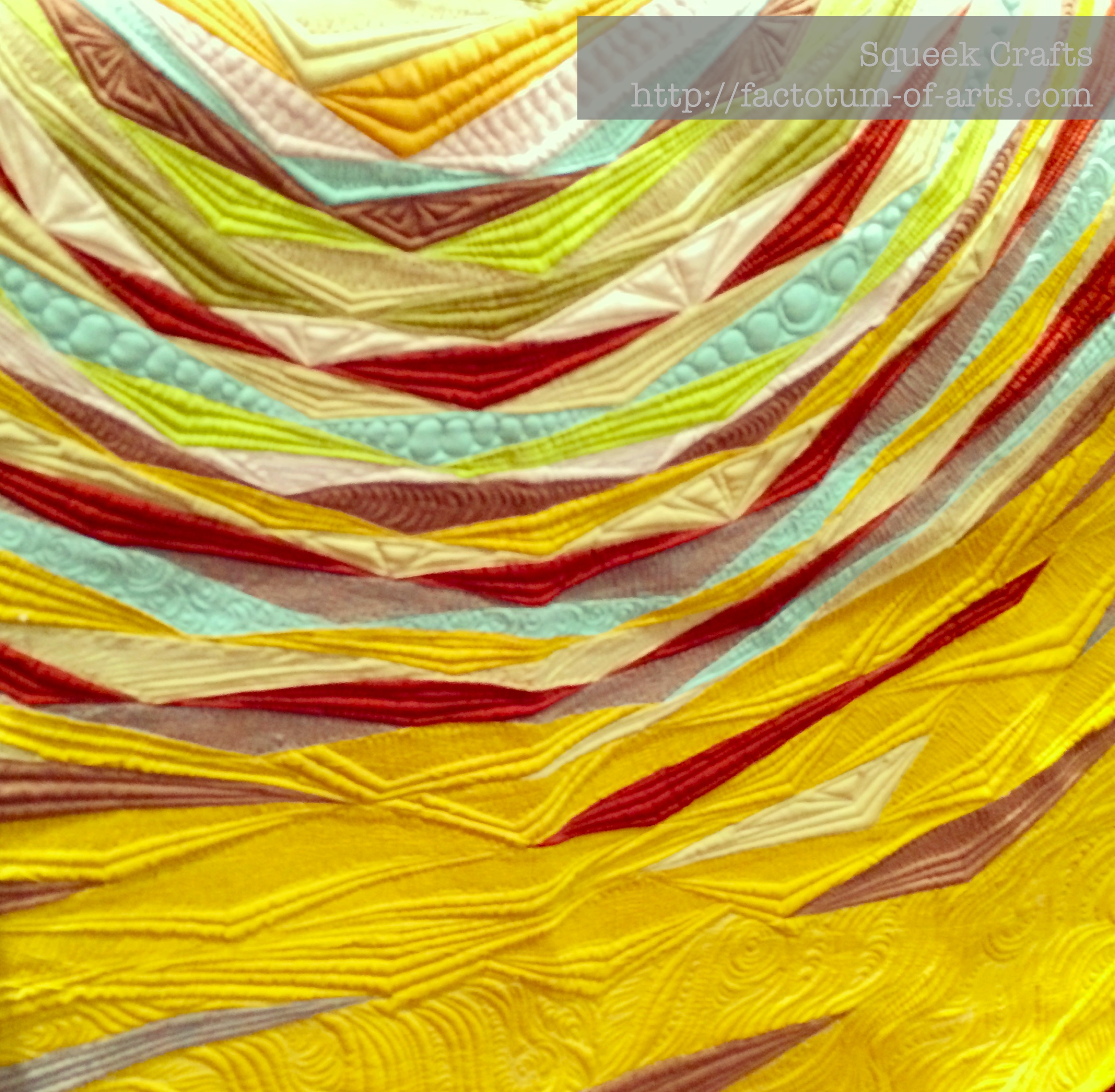 These were some of my favorite mini quilts that she had bought with her. I love that she has all these vibrant colors in her quilts. All those small pieces did not start out small, it’s all about how you piece the together…and then trim.