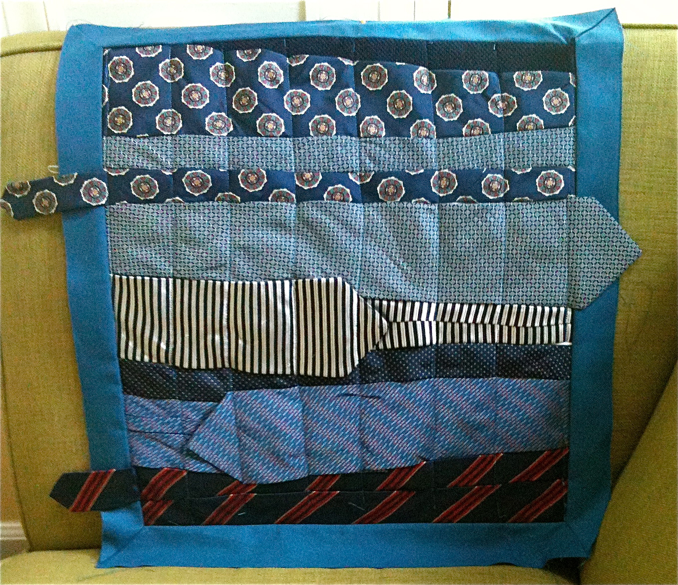 For more ideas on what you can do with ties check out this blog on Sewing with ties, which was this cool site I found after I completed these. In this site, I especially like the tie circles and the tie covered tree art.