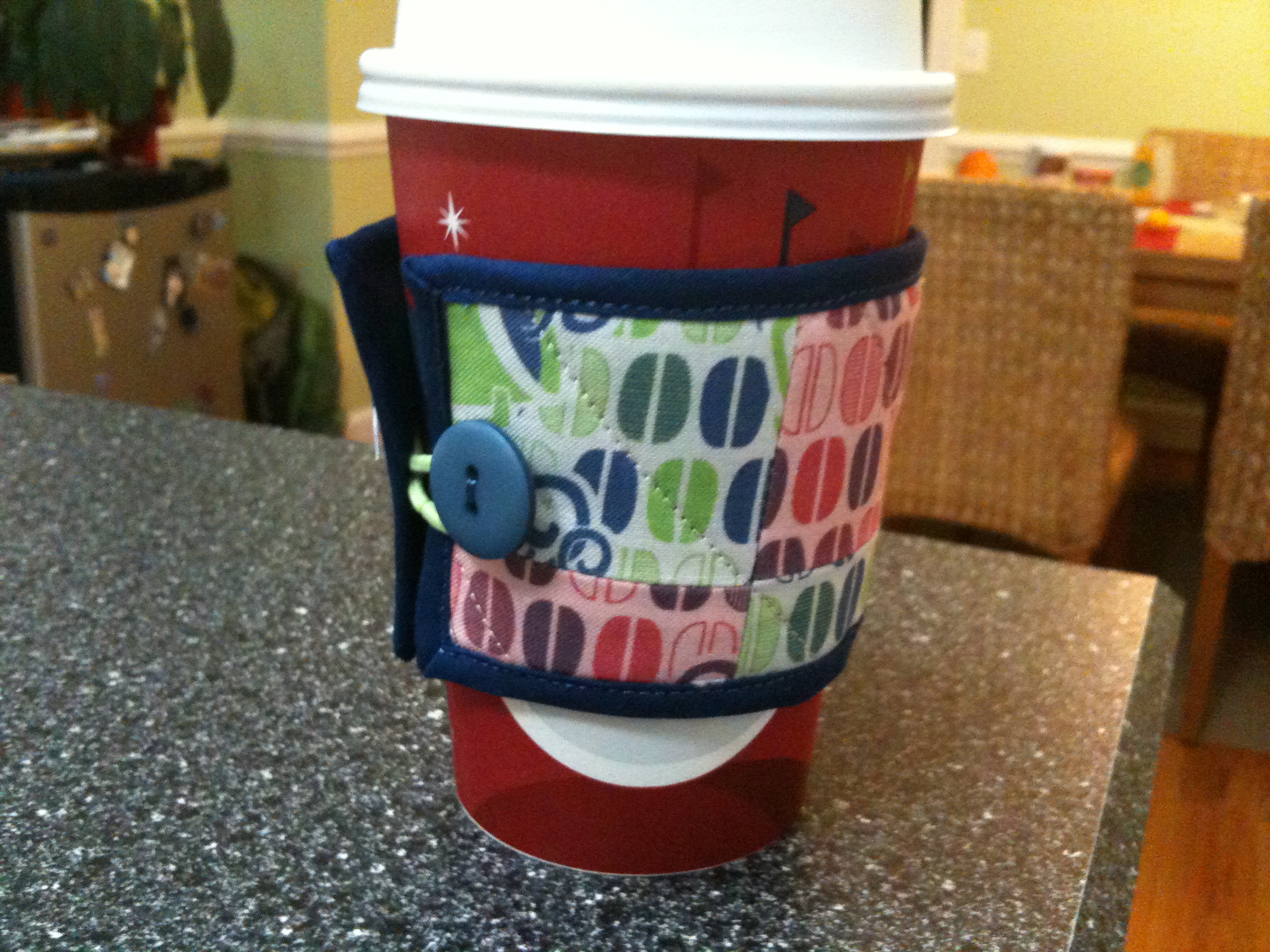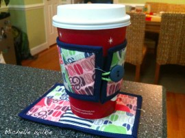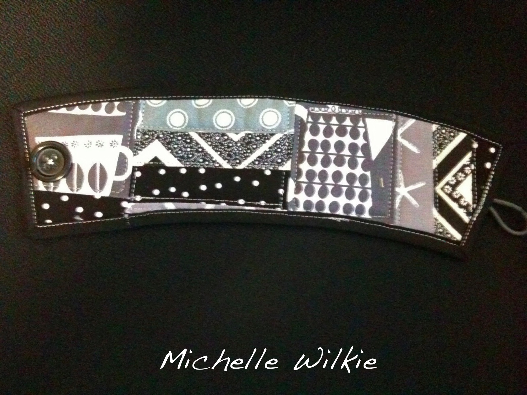 Things are coming along with the reusable coffee cup sleeves, and they are looking good. I have put in a significant amount of work into design, patch working and the quilting of these, but the most important thing…I am having a lot of fun doing it. You won’t believe this but I am having trouble keeping the sleeves for the fair – I have already sold 6 of them!!!