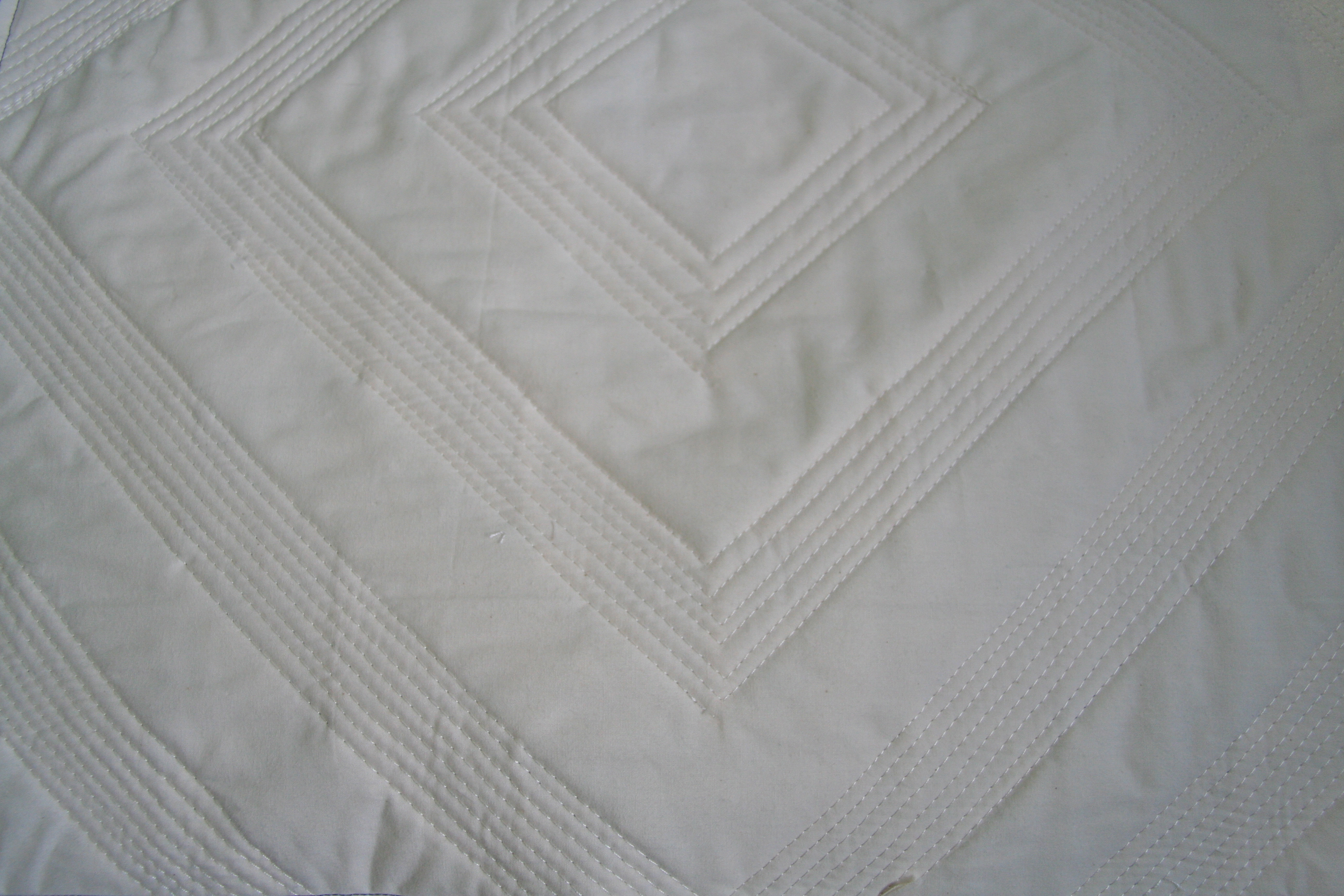 The Patchwork, please design gives you a couple of choices on how to do the main panels; I chose to paper piece the triangle fronts. I also decided that I would choose all blue fabrics with a theme of spots. Are you “seeing spots”?