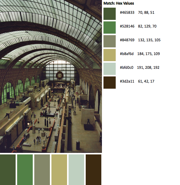The glass roof of the old railroad station of Musee d’Orsay has amazing shades of greens.