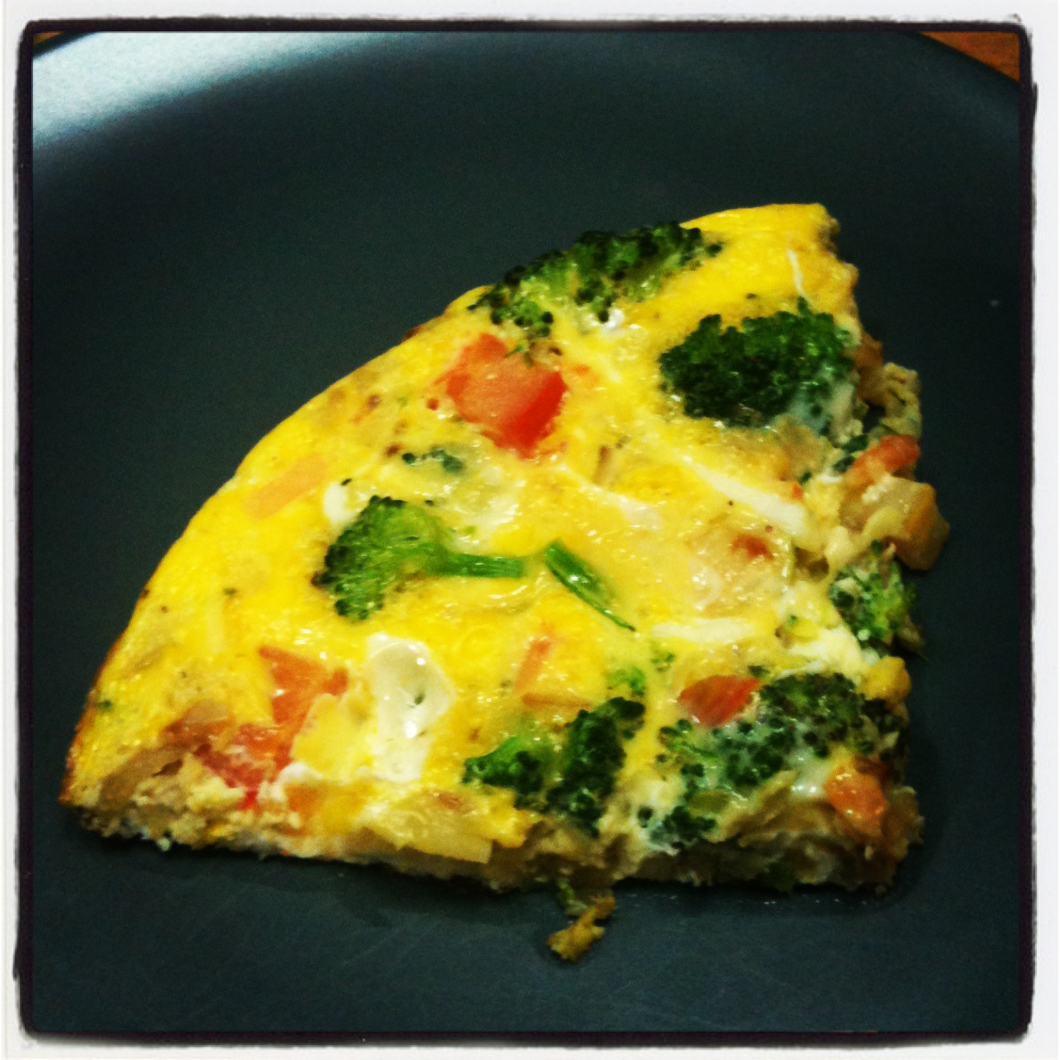 NOTE: I put aluminum foil on the handle of my pan before putting in the oven as I do not think it is oven proof. - Serve 1/4 of the frittata on a plate, it goes well with a spinach or garden salad.